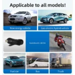 • Wide application, it can work on all cars, trucks, buses, E-scooters, E-bikes.